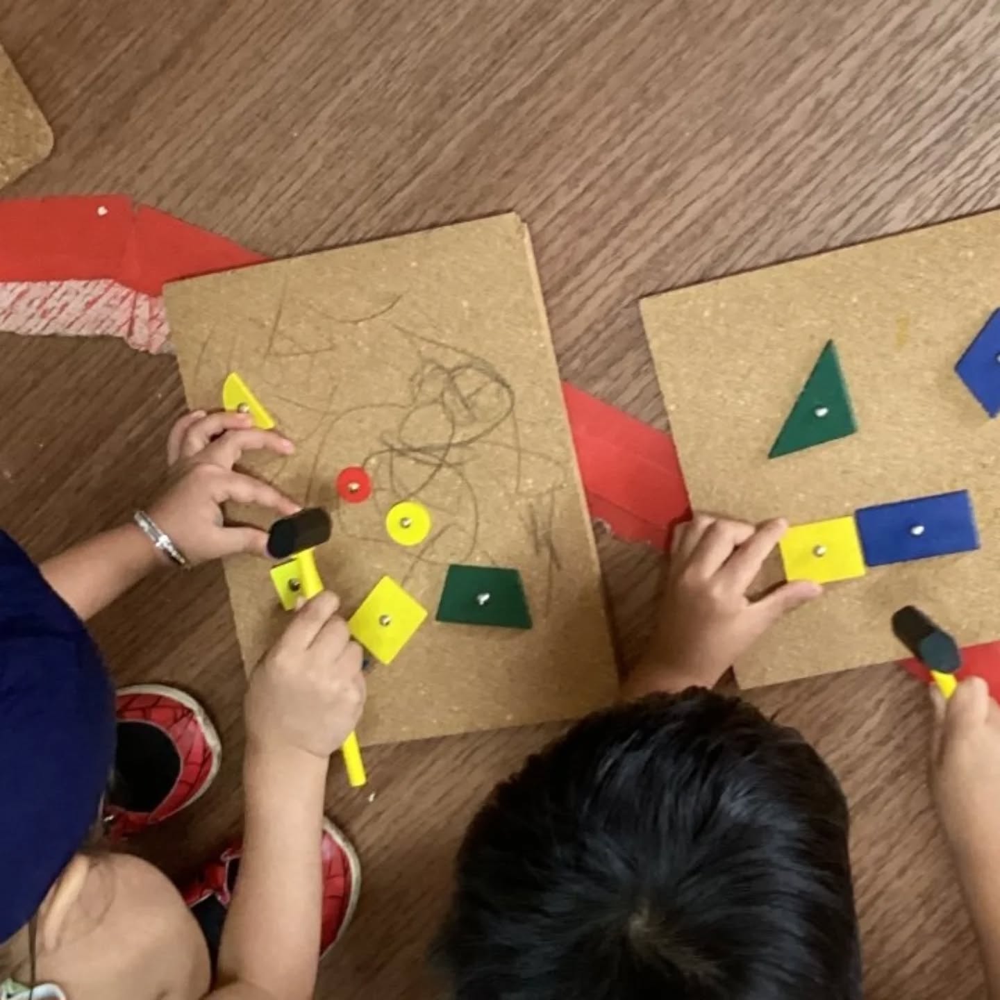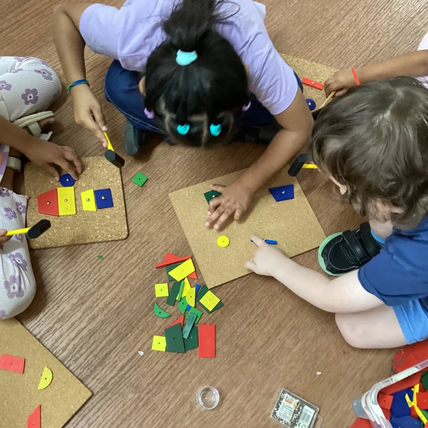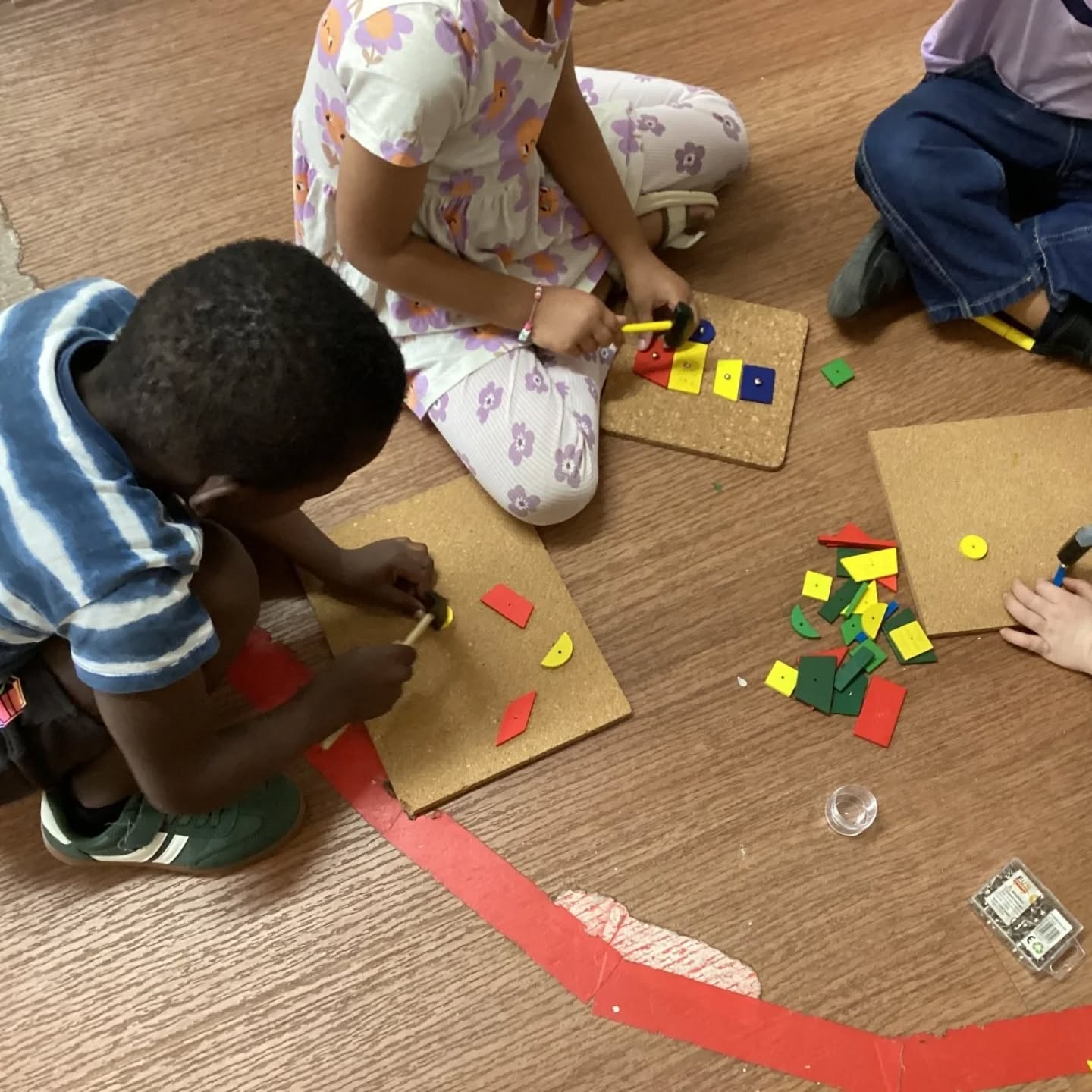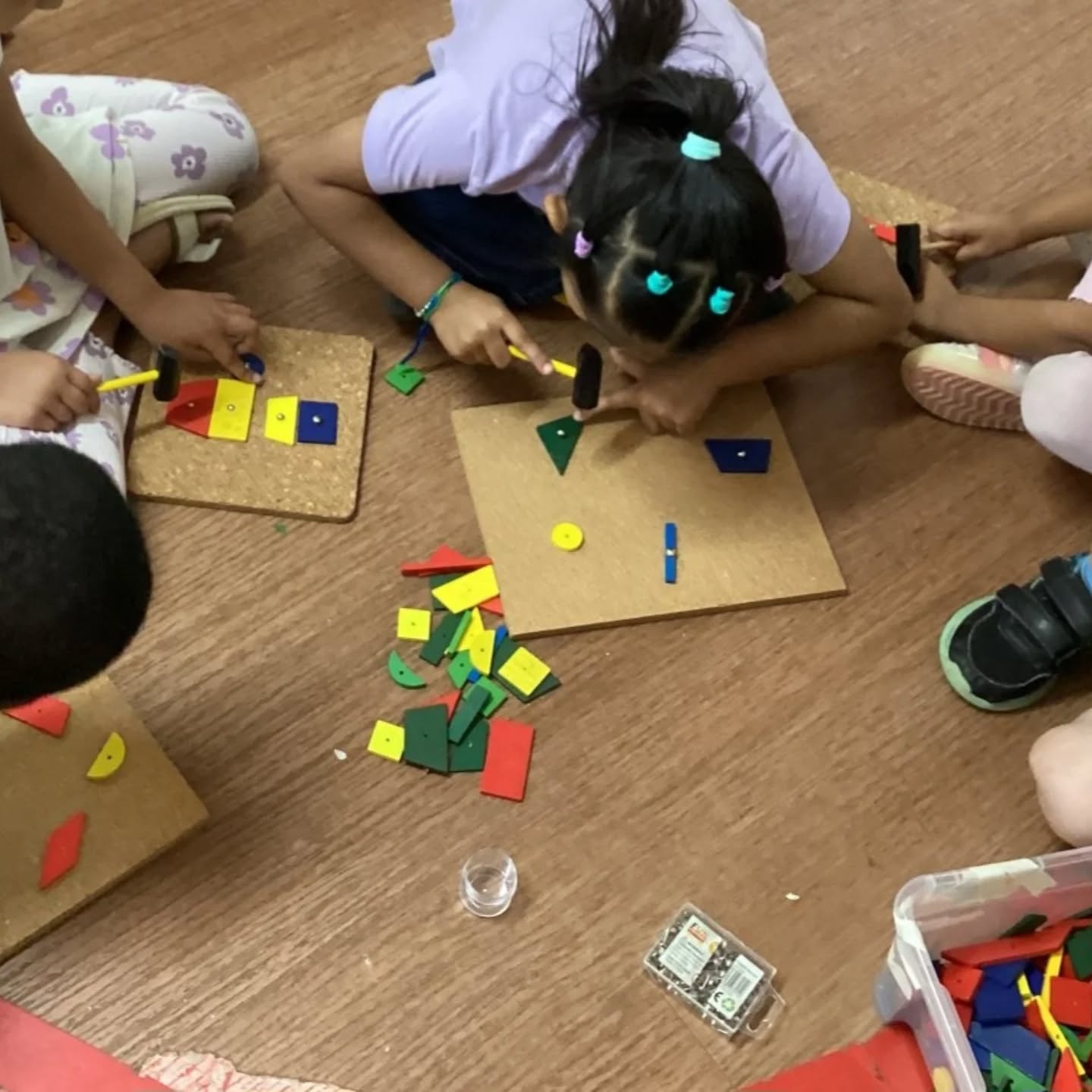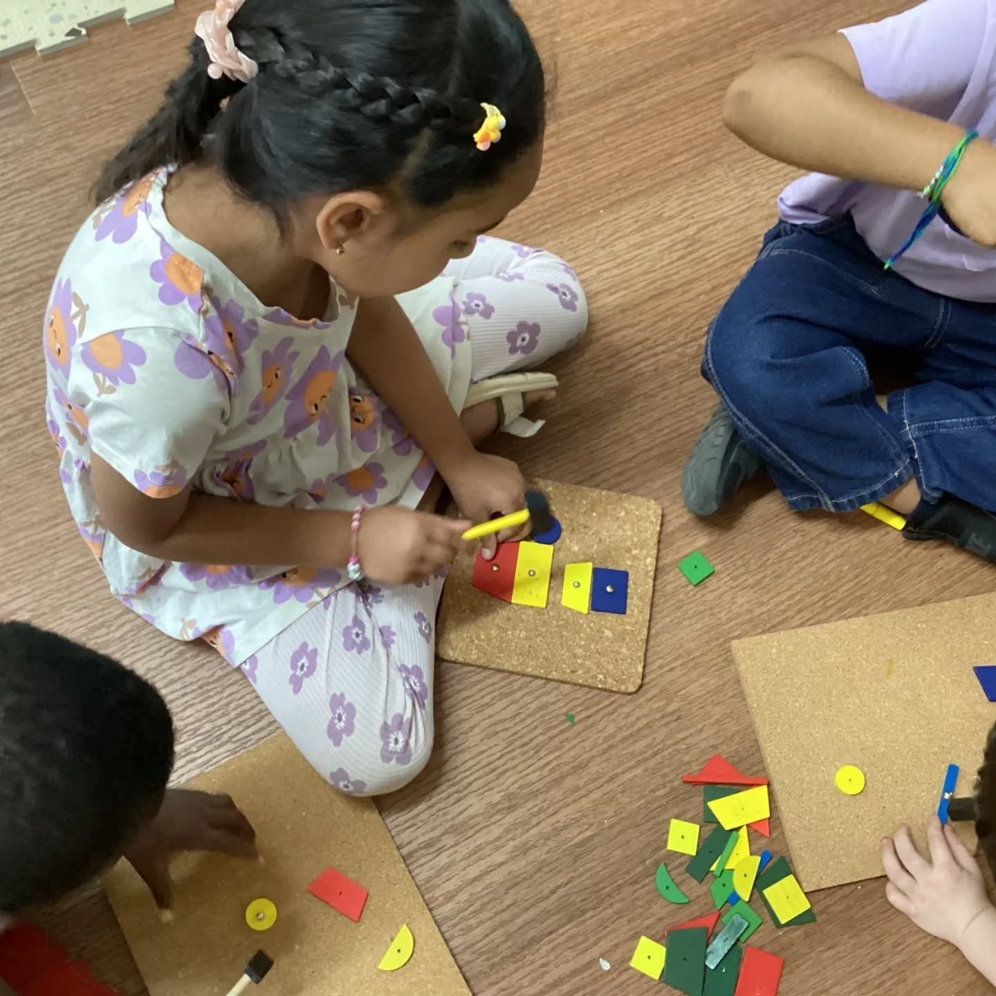 Using hammers and cork boards, children carefully nailed different shapes, strengthening their focus, coordination, and creativity